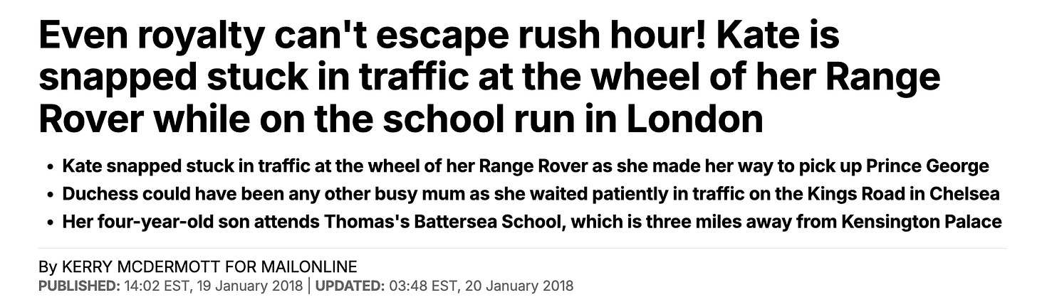 Time and again, royal reporting has emphasized Catherine “insisting” on personally dropping off and collecting the children from Lambrook, reinforcing a version of motherhood that is visible, deliberate, and (crucially) legible to the public. The message isn’t that the Wales children are raised without help, but that their parents remain actively, recognisably present despite their privilege.